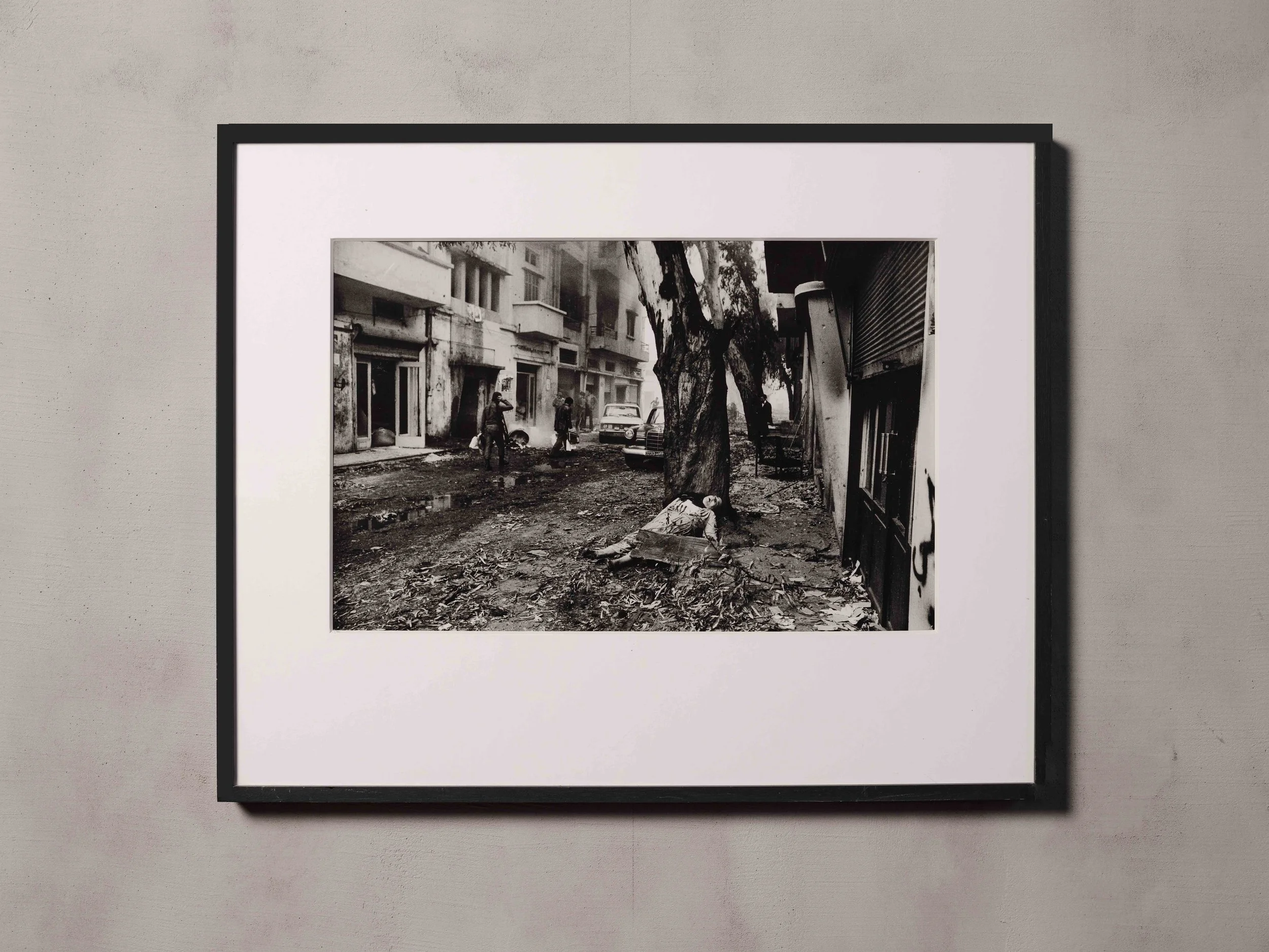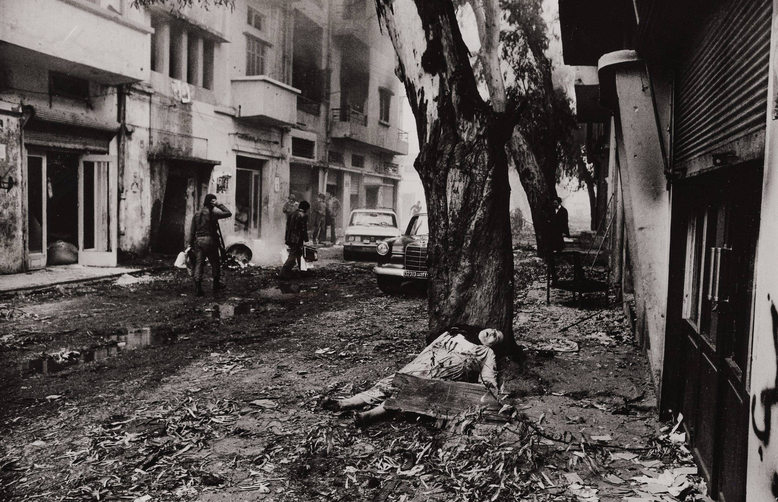 Donald McCullin, A Dead Palestinian Woman, Beirut, 1976–1980. Stampa alla gelatina ai sali d'argento, 56 x 69 cm, incorniciata.