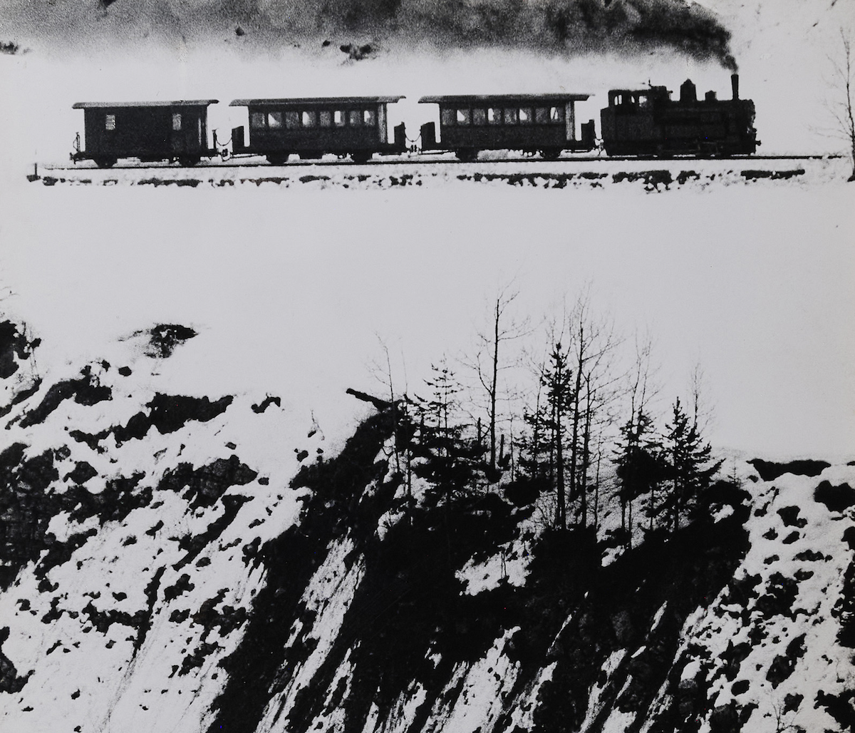 Gianni Berengo Gardin, Il trenino della Val Gardena, 1958. Fotografia, 54.5 x 47 cm, incorniciata.